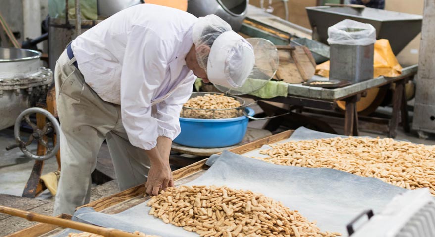 「網代焼」のチョイ辛味は、大学生の皆様と共同開発をしました。若い世代の方々と協力することは、お金にかえられないメリットがあるんです。今の若い世代の方々は、未来の消費者ですから。彼らの世代の感性を取り込むことが、将来のお菓子作りに役立ちます。またお年寄りの方に買っていただくと、お孫さんにも食べてもらえる。お孫さんが大きくなれば、ここに戻ってきてもらえます。新野屋はこれを創業から約110年、繰り返してきました。繋いできた想いを先へ、先へ。一年でも長く繋ぐため、私たちは日々精進しています。